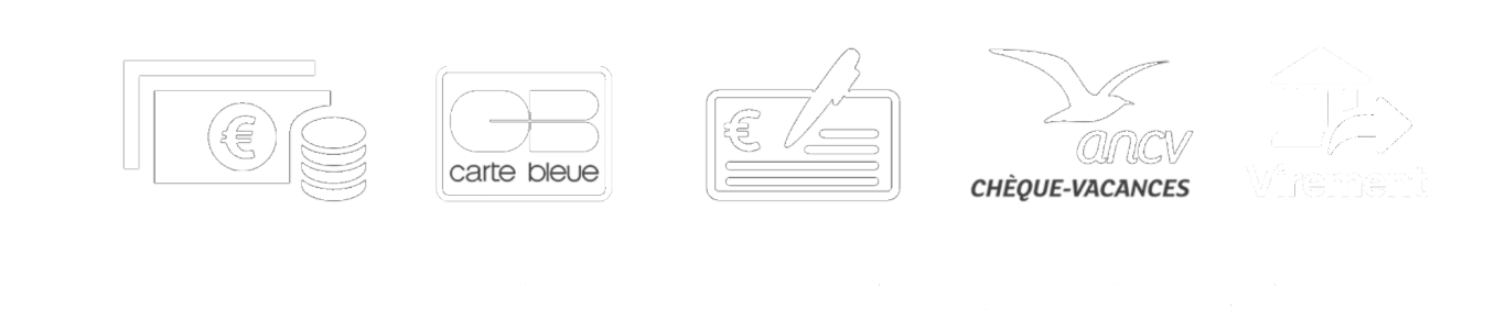 Nous acceptons les paiements par espèces, chèque, virement bancaire, carte bancaire, chèques vacances papier et connect.